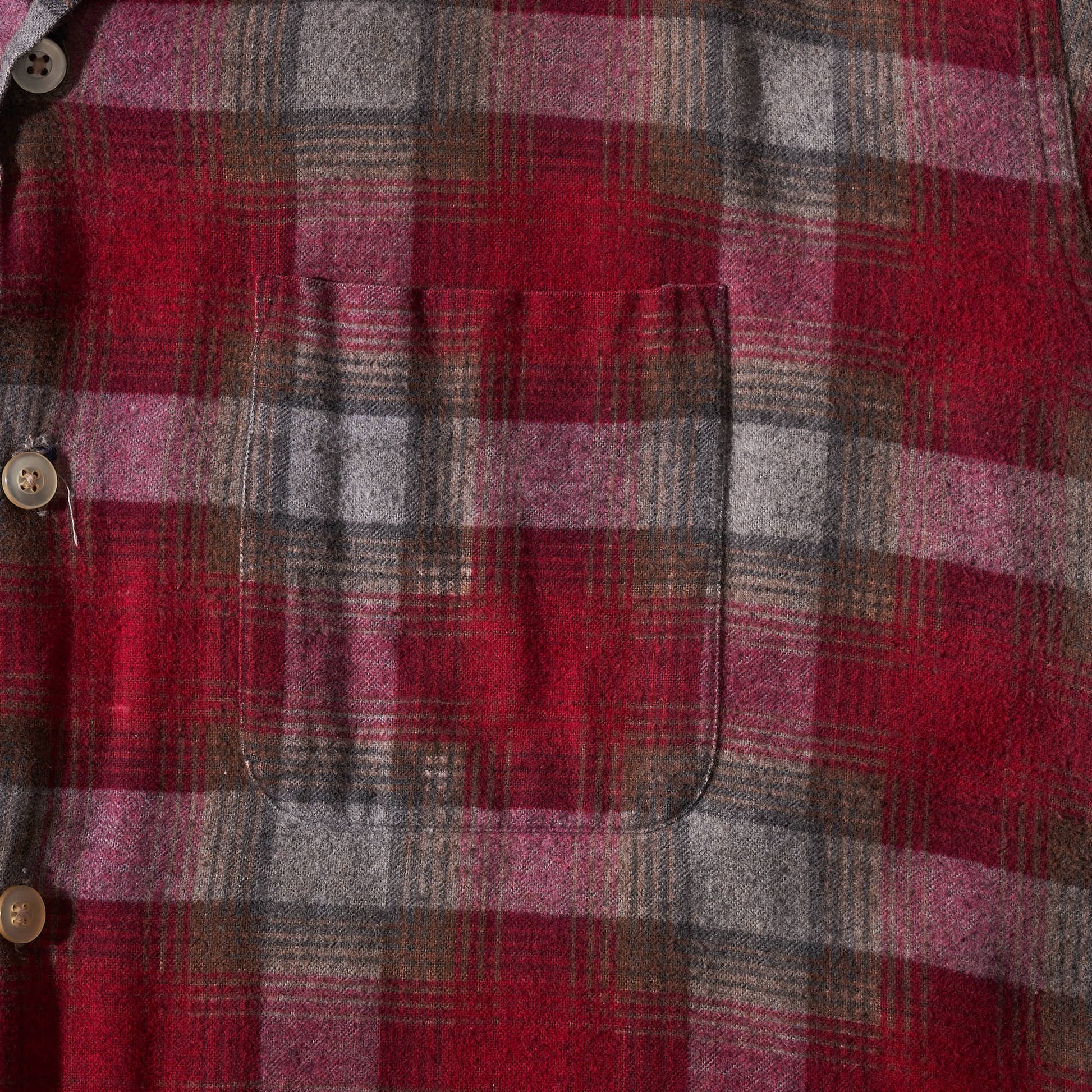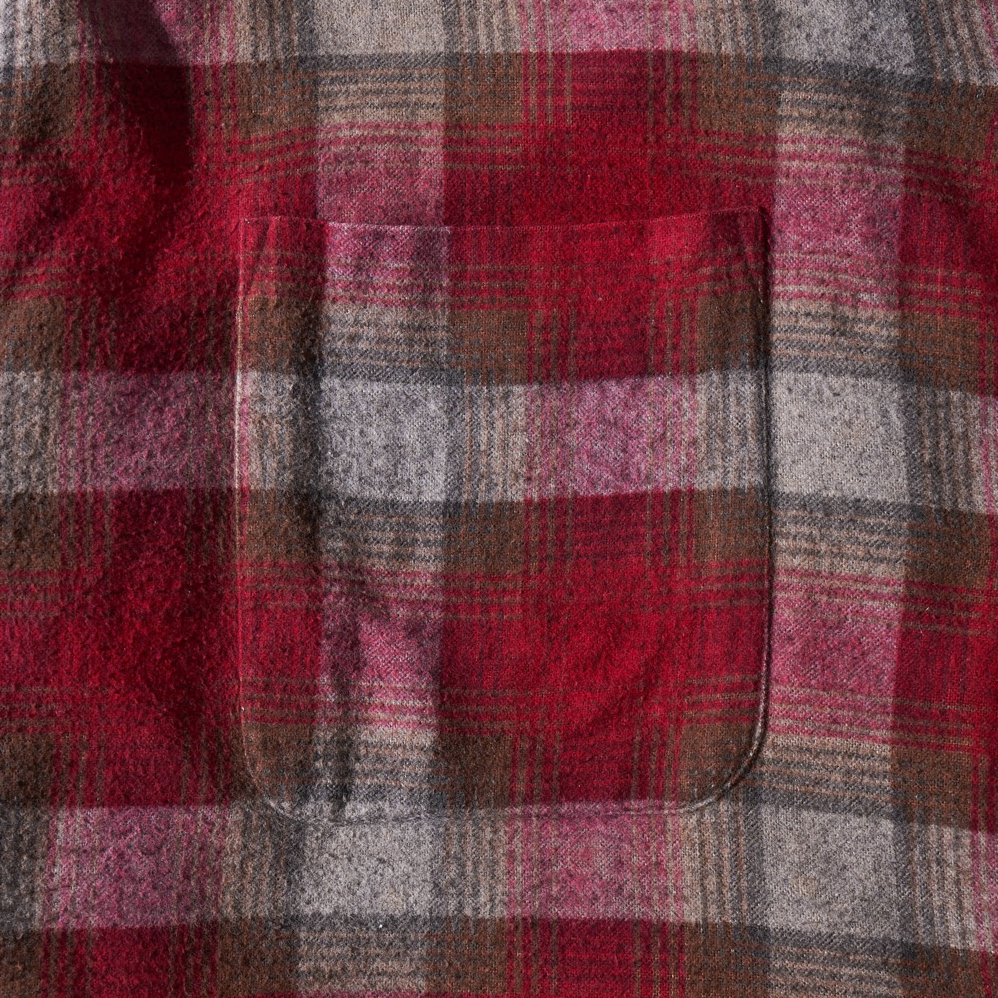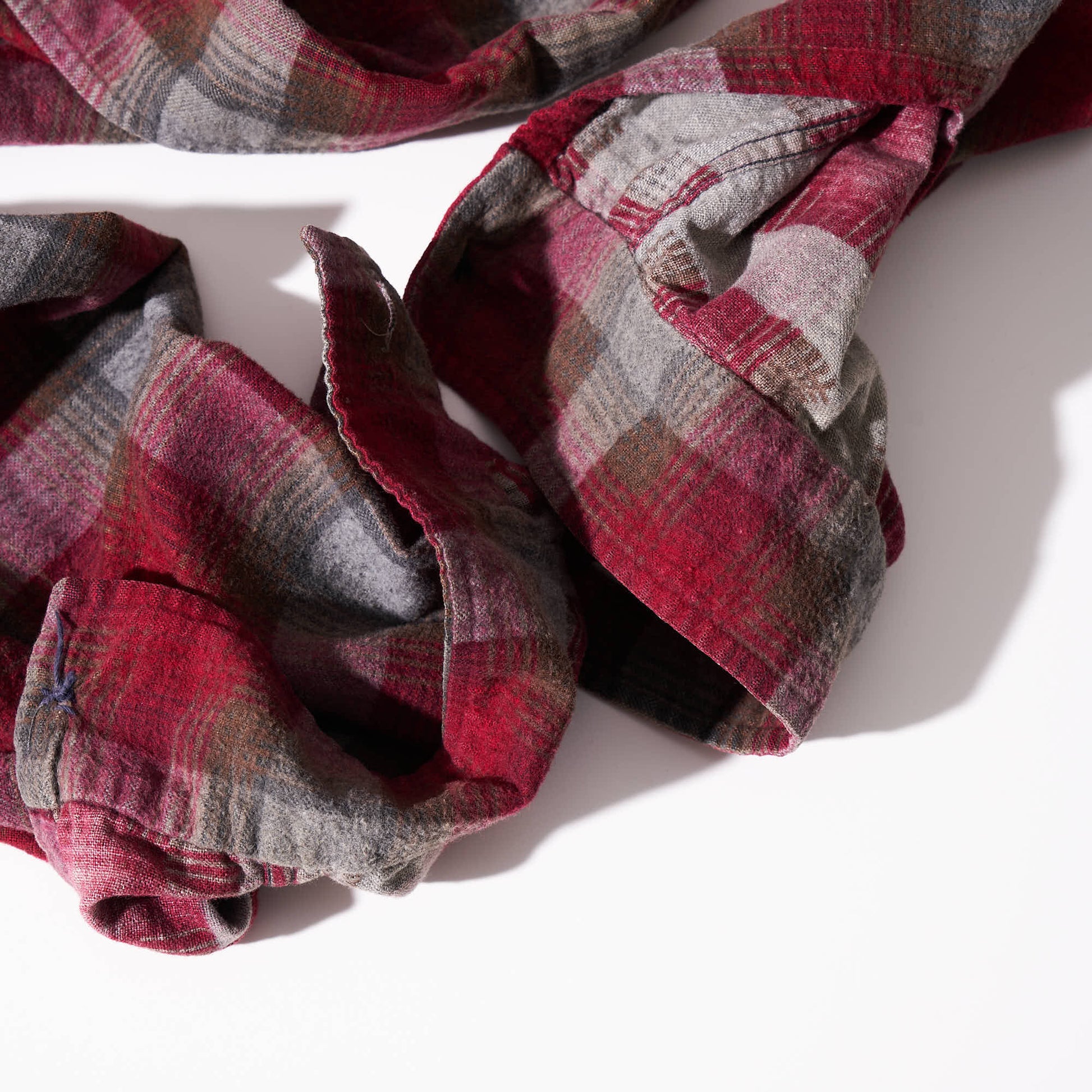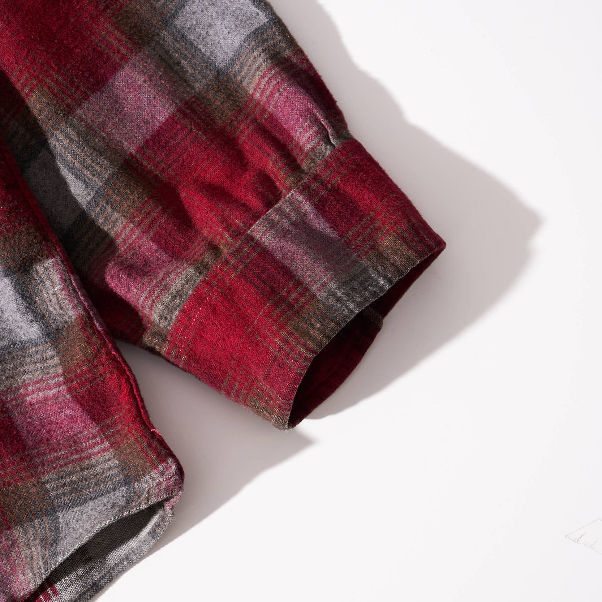 レッド×ブラウン×グレーベースの配色。